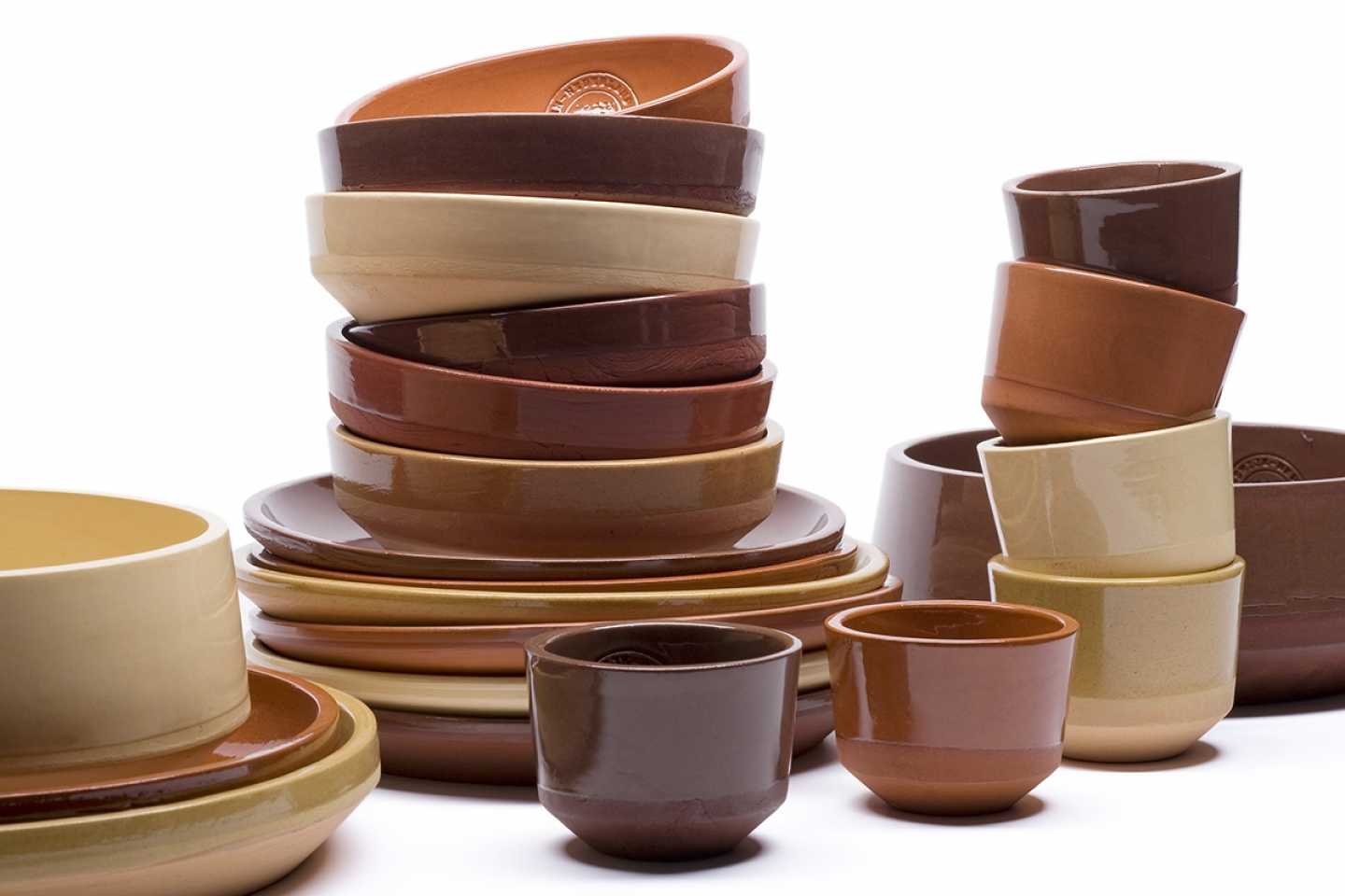 Atelier NL’s Clay Service is a set of plates, bowls, and cups created from clays collected at different places across the Netherlands and Europe, specifically chosen for their geological, historical, and social significance. The objects vary considerably in colour, depending on the chemical components of the local soils. To highlight the narratives and physical structures inextricably bound to the collection, each piece carries a stamp that links it directly to its place of origin. Born as a handmade table service during Atelier NL's Noordoostpolder residency, formal production first began through collaboration with Royal Tichelaar Makkum. Due to the closing of Makkum's homeware line in 2016, in-house production now takes place at the Atelier NL studio.