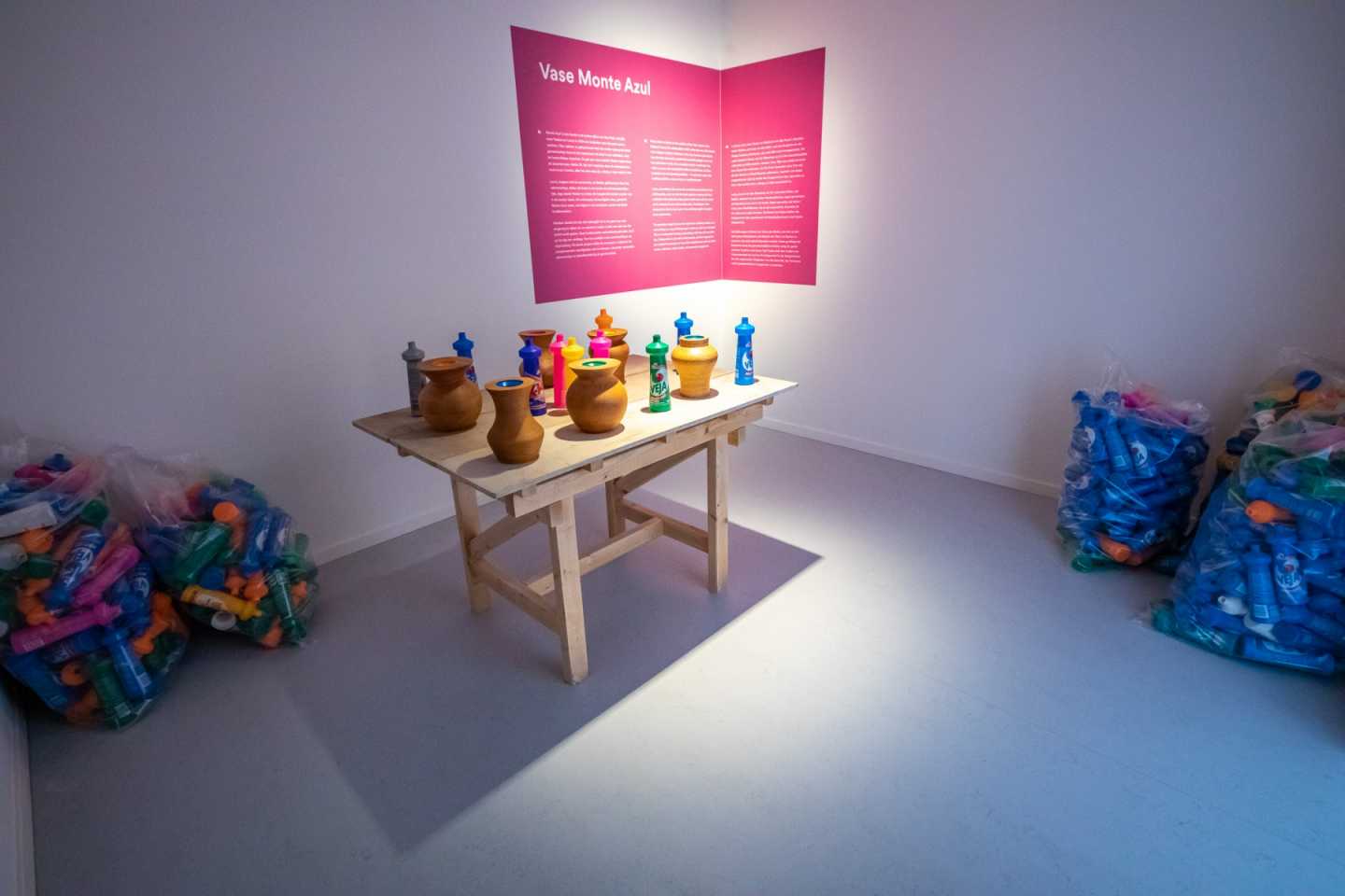 Monte Azul is a favela on the outskirts of Sao Paolo, Brazil. It is where the vases were conceived and designed, and where they are manufactured, in an effort to boost salability for the local woodworkers. In Monte Azul, certain waste provides people with reusable and resalable material. Empty, colourful, plastic detergent bottles, retrieved from waste by local collectors, were the inspiration for this project and used as the waterproof core of wooden vases manufactured by local woodworkers.