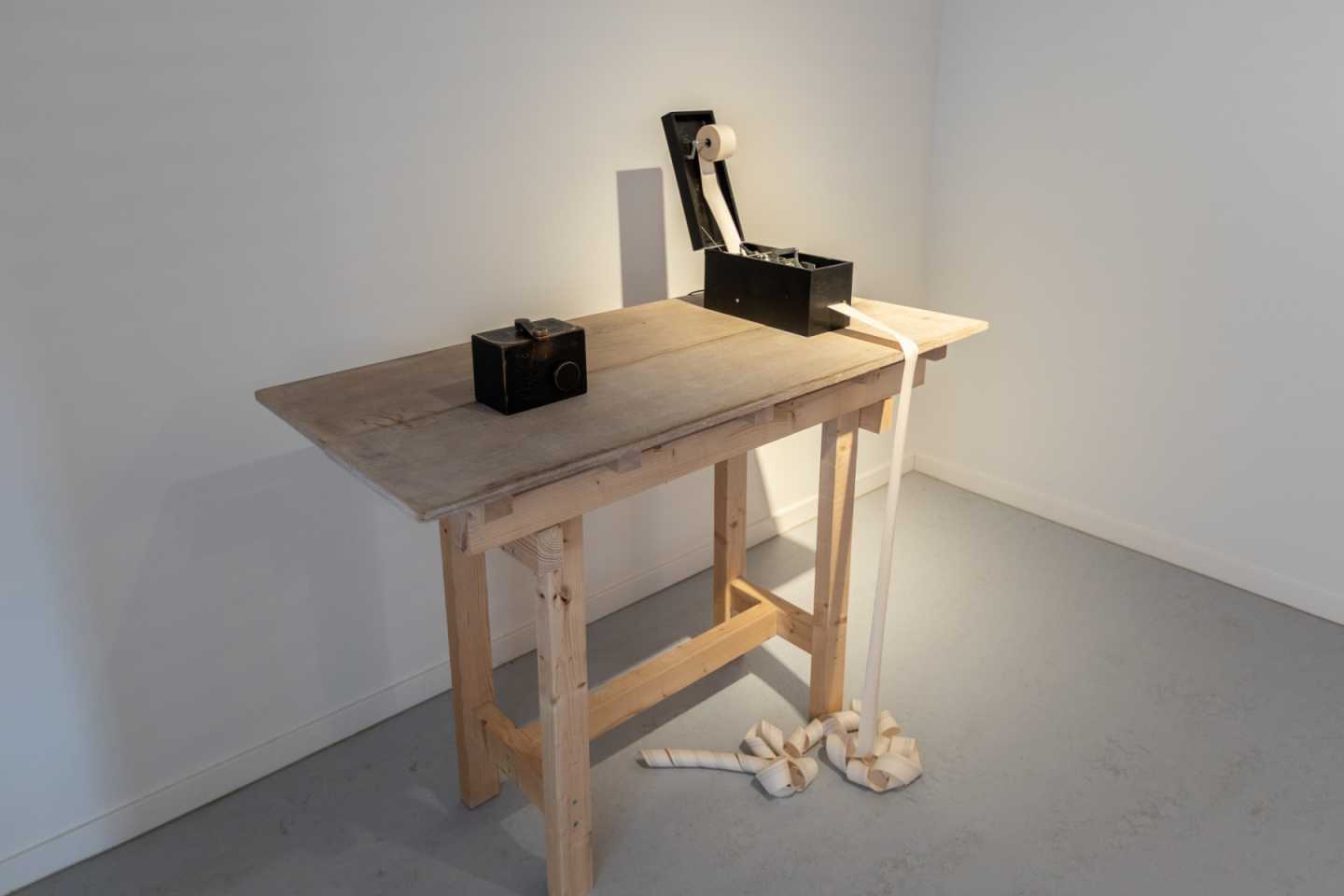 The Timewriter is a mechanical instrument made to measure and register time. Using four numerical stamps it imprints time, tracing it, on paper every minute. Time is described and recorded as a continuous linear progression. The future becomes present, the present becomes past, the past becomes future. In a new take on time, the Timewriter creates a physical recording, revealing the accumulation of time.