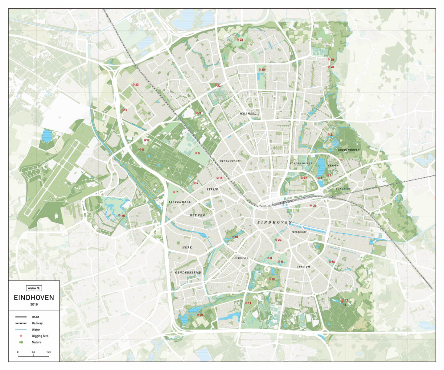 We collected 150 soil samples from 30 different locations from across Eindhoven. At each location we drilled one meter deep to obtain different layers of soil.