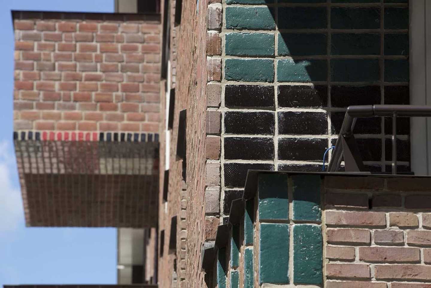 Atelier NL is responsible for the ceramic colourwork in the new Tugelablokken facades — the glazed bricks that have been integrated into the outer masonry. These small additions strategically highlight the architecture and serve as a nod to the history of the community. The glaze palette was inspired by original tile panels featuring the Jewish Artisans of Friends emblem, a union that was the precursor to the first housing association. Jewish residents were the most prominent demographic in this area prior to the war. True to Atelier NL’s storytelling methodology, the design speaks to both the Jewish roots and the everyday life of present residents. The passage of time and cultural evolution of the area was all taken into account during the strategic design process.
