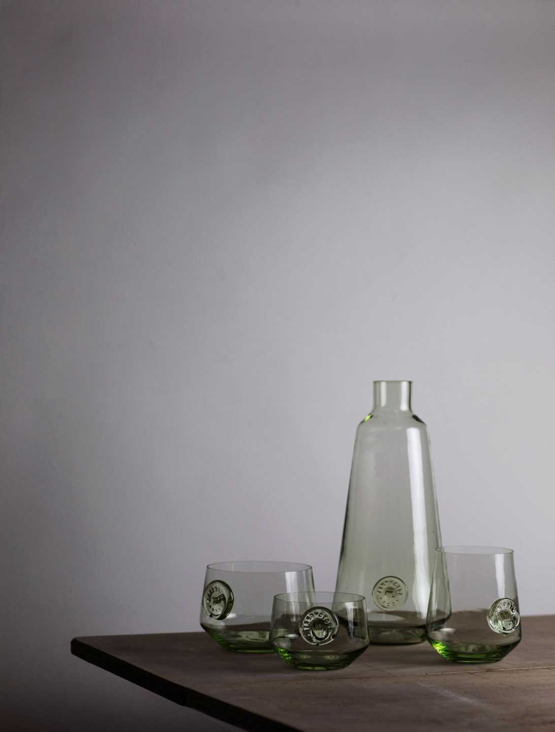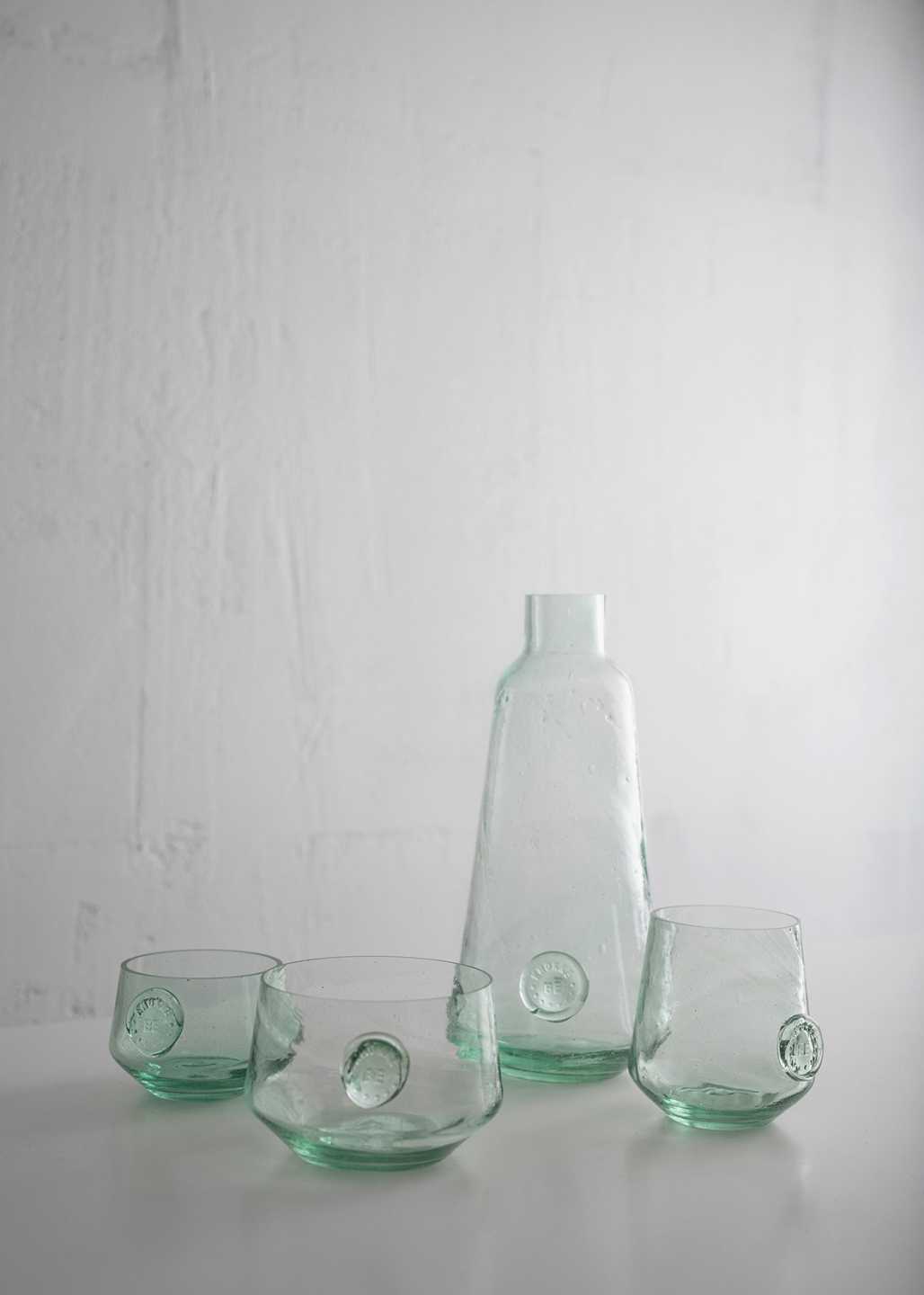 The unique process of glassblowing from local sands could be compared to that of a dance, and is equally as captivating and beautiful. A rhythm is formed with the molten glass as the glassblower spins the substance on the end of the blowpipe, manipulating it until it is in the perfect shape to be placed into a mold and blown into, thereby creating the form of the final object. Once the mold is released, the glassblower continues to twirl the molded glass on the end of the blowpipe as it cools. The final seal is made with an Atelier NL stamp that indicates the sand’s origin. Once stamped, the glass objects are placed in a cooling kiln, which prevents them from breaking or cracking as the temperature of the material cools and hardens.