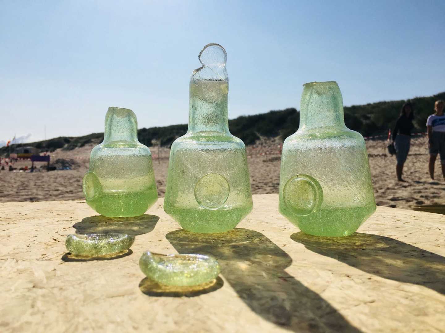 Brabantse Duinen. It was created especially for Dutch Design Week 2017 in collaboration with Natuurmonumenten. Our fourth ZandGlas edition was made from the sands of the Maasvlakte region in Rotterdam, a massive human-made coastal extension built by sand reclaimed from the floor North Sea. The series was developed in collaboration with Museum Boijmans van Beuningen to mark the ‘Change the System’ exhibition in January 2018. The delicate sandy-green colour of the glass reflects the unique characteristics of the prehistoric sands and tells the story of the longstanding relationship the Dutch share with land and sea. Terschelling. Together with festival-goers and scientists from the Wadden Academy, they collected sand from all over the island from which we made the first ZandGlas-Waddenservies edition. The Wadden area is particularly special because it is where we began collecting our first stories of sand. It is a truly unique and special place where one can find themselves in a gust of wind or a breathtaking sunset, and we pay tribute to this sense of freedom with ZandGlas—Terschelling.