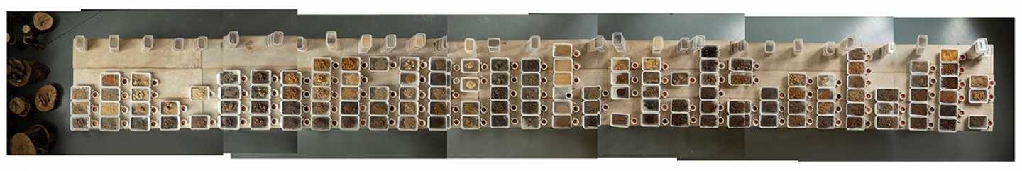 Our digging has resulted in a material archive that reveals the colours of Eindhoven. From this collection, we carefully selected a range of pigments to visually represent the very soil the city is built on.
