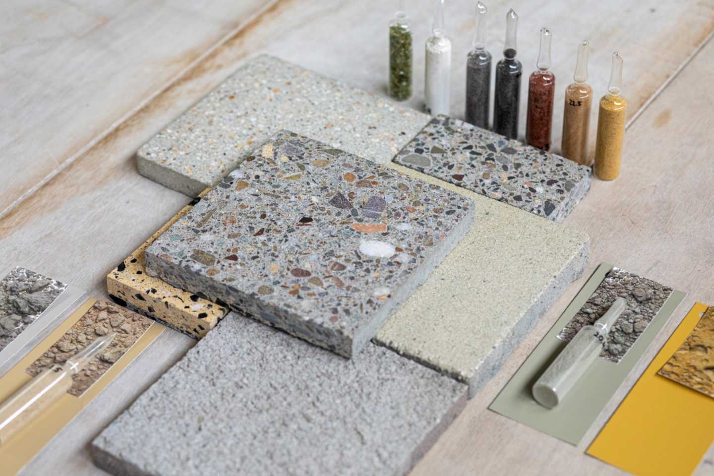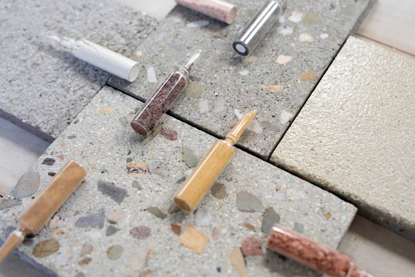 From this material research, stone manufacturer Metten Stein+Design developed a family of tiles that vary in colour & texture. The warm grey background of the tiles matches the colours of the Brabantse loam — a mixture of clay, silt, and sand. The individual fragments within the tiles come from the natural colours found in the city’s terrain — from the ochre of the iron rich sands to the deep brown top soils. These particles create identifiable features within the city streets that reflect its energy, playfulness, and diversity. The stones create a beautiful and distinctive surface for people to walk, roll, run, bicycle, and drive on. By visually connecting the qualities of the earth to the pavement we walk on everyday, we hope to ground local people by reflecting on the unique characteristics of the very place we call home.