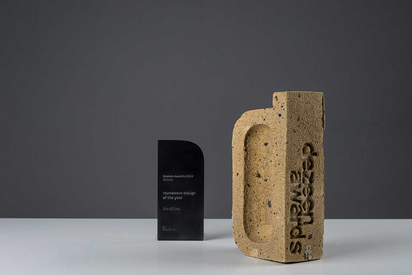 The trophies come with a wooden presentation box. A metal plaque that serves as a base of the trophy when it is on display carries the details of the winning project, studio and category. It was made in collaboration with the graphic design studio HeyHeydeHaas.