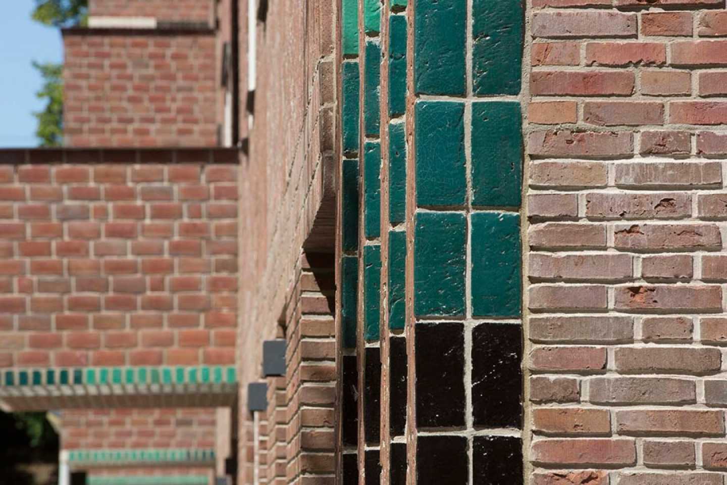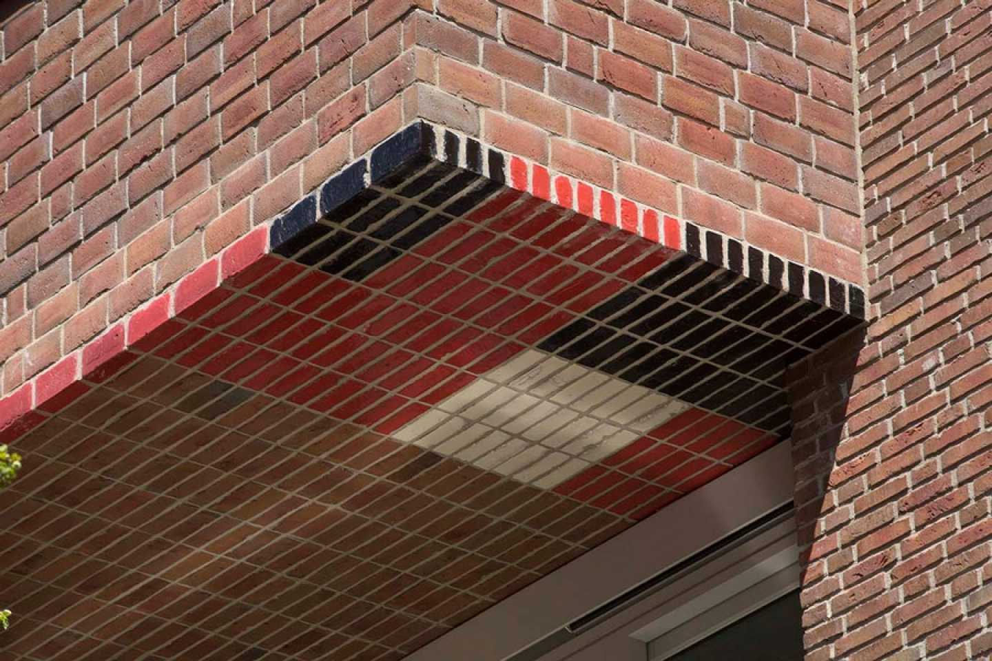 Atelier NL is responsible for the ceramic colourwork in the new Tugelablokken facades — the glazed bricks that have been integrated into the outer masonry. These small additions strategically highlight the architecture and serve as a nod to the history of the community. The glaze palette was inspired by original tile panels featuring the Jewish Artisans of Friends emblem, a union that was the precursor to the first housing association. Jewish residents were the most prominent demographic in this area prior to the war. True to Atelier NL’s storytelling methodology, the design speaks to both the Jewish roots and the everyday life of present residents. The passage of time and cultural evolution of the area was all taken into account during the strategic design process.