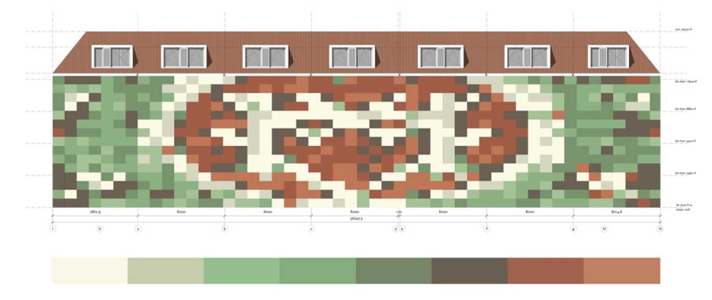 We studied the architectural design for a long time — what were the building's characteristics? The artwork runs over the entire facade, all around the building. Each resident has their own pattern with their own colours. This emphasizes the individual, their own world within the greater whole. We also wanted to include the various perspectives, the various views in the work — those of residents, of people who pass by on a bicycle, in a car or by. The artwork, therefore, has a different experience from each side depending on the way you approach the building. The historic tile pictures from the demolished houses have been preserved and have been given a place in the new building, near the entrances so that they can be seen clearly from the street. In the final piece, artwork and architecture are intertwined. The pattern in the facade is not random, it has logic. It is a plan with laws and rules.